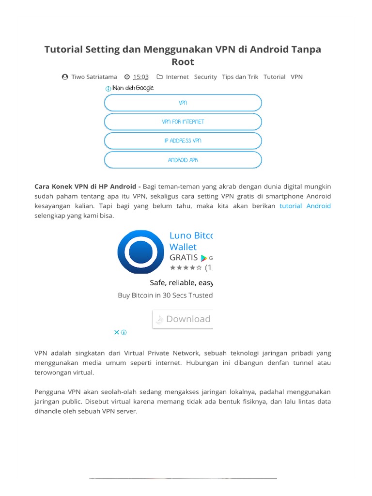 Vpn gratis terbaik android terbatas bisa menjadi solusi yang baik jika kamu hanya membutuhkan vpn untuk waktu yang singkat. Cek 5 vpn cepat, gratis, terbaik, dan kompatibel android. Namun untuk menggunakan vpn seperti pptp (vpn terbaru) anda harus terlebih dahulu melakukan akses root di hp android anda, silahkan anda baca cara root hp android. Biasanya vpn gratis jika disediakan pada fitur software pc berupa trial dalam beberapa hari kemudian diminta untuk melakukan upgrade akun dengan membayar perbulanya. Con estas aplicaciones vpn para android podrás navegar anónimamente salvaguardando tu identidad, proteger tu privacidad y saltarte cualquier tipo de censura o restricción geográfica en internet.